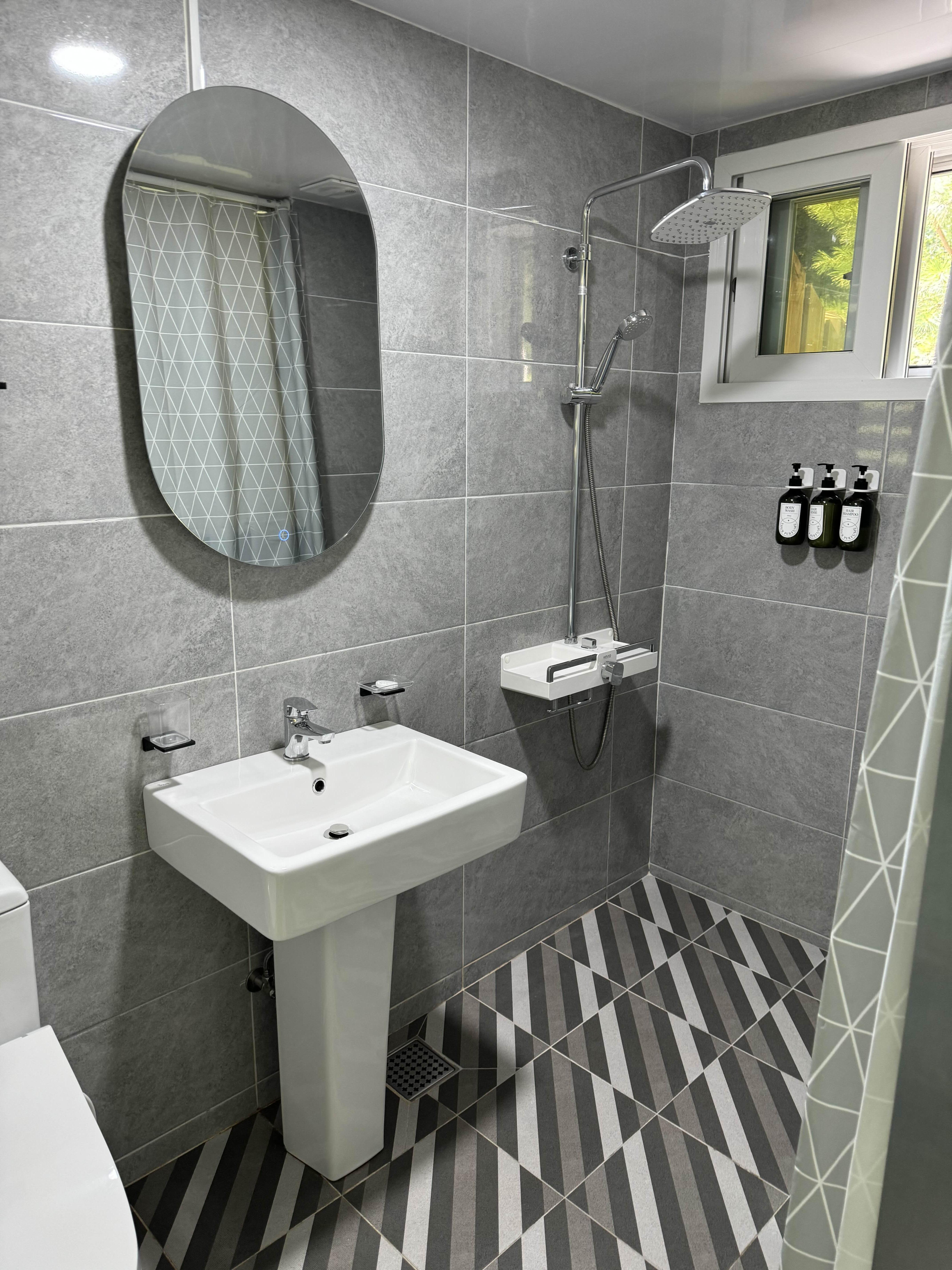 뜨거운물 잘나오고 은근 커다래서 여자 셋이서 들어가도 충분했던 사이즈에요
