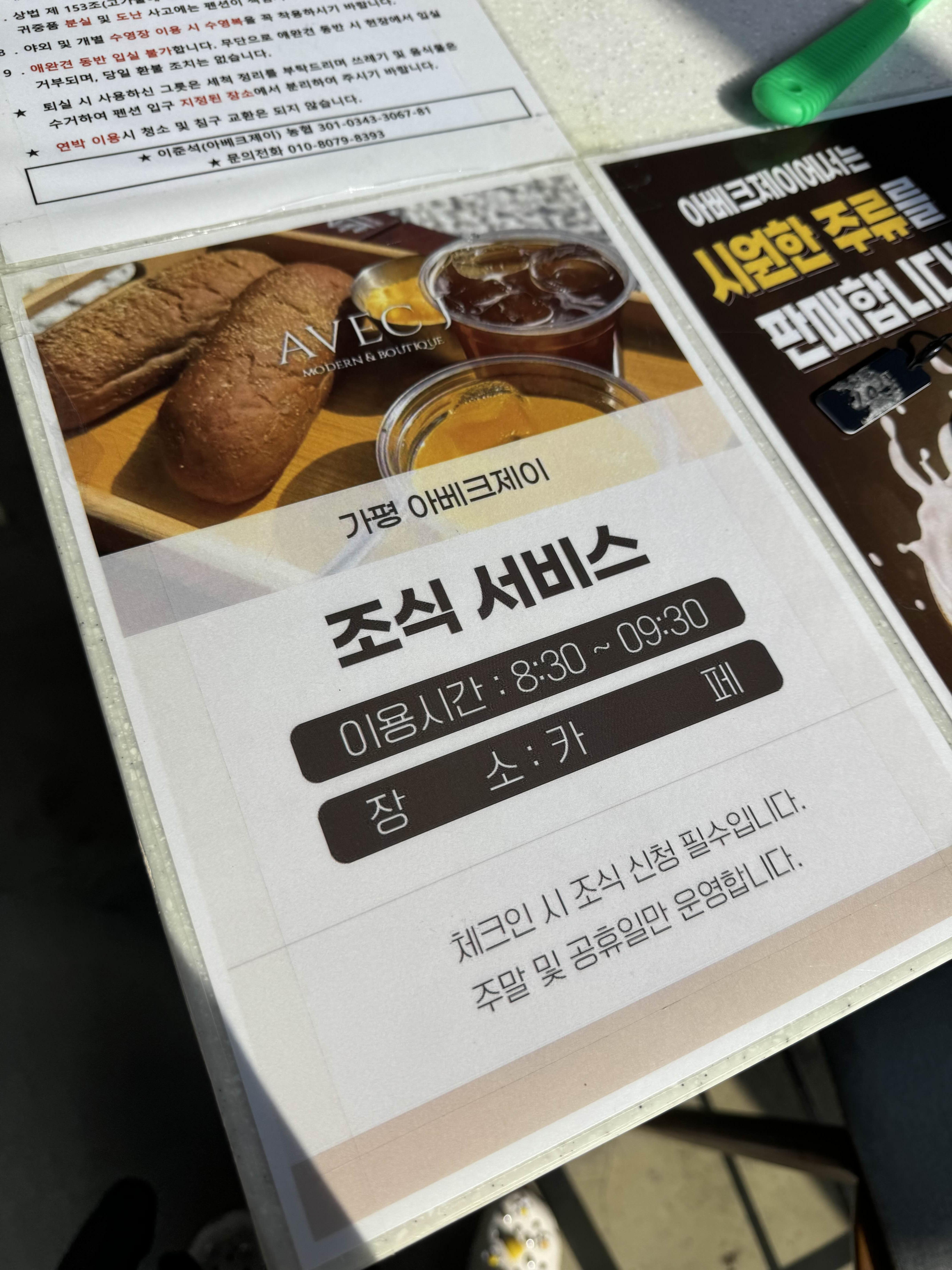 조식은 08:30 ~ 09:30분까지 아베크제이 체크인 했던 카페로 가면
