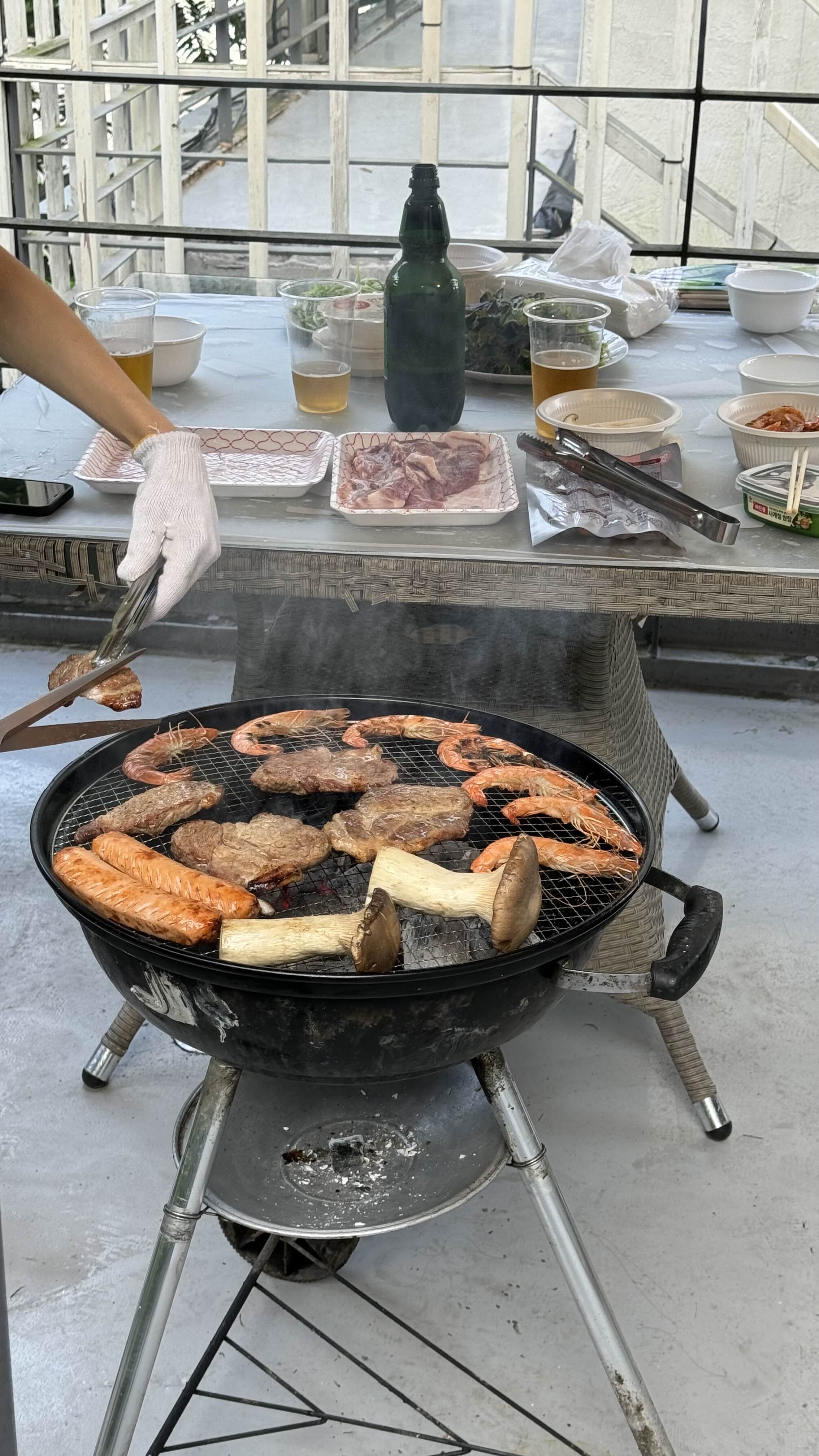 시간에 맞게 준비해주신 바베큐 숯불에서